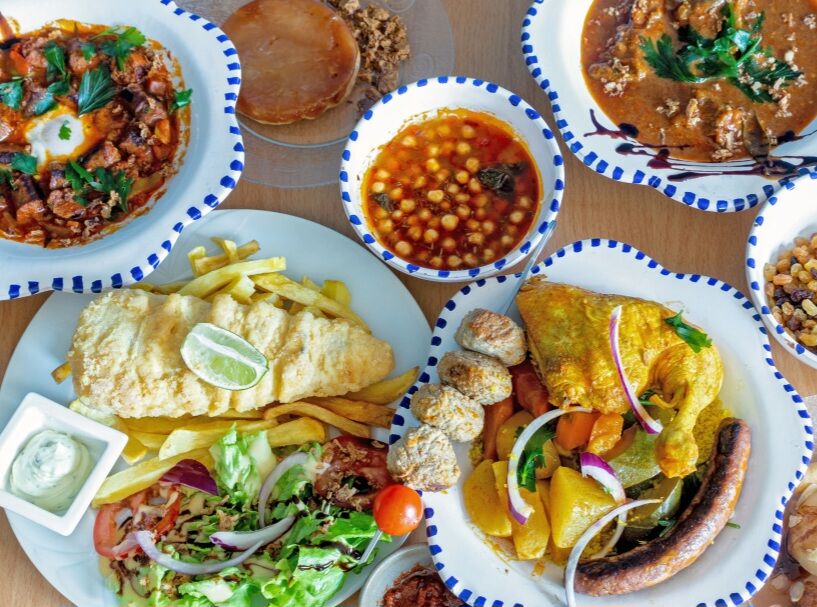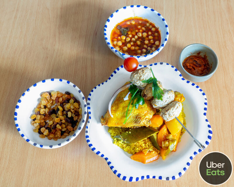 COUSCOUS POULET .BROCHETTE DE BOULETTE D AGNEAU .MERGUEZ